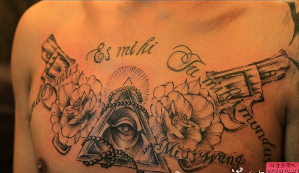 上帝之眼手枪花纹身图案