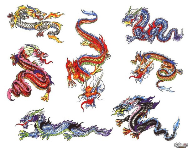 龙纹身手稿_一组老传统黑灰龙手稿纹身图案