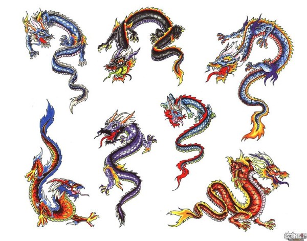 龙纹身手稿_一组老传统黑灰龙手稿纹身图案