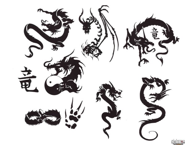 龙纹身手稿_一组老传统黑灰龙手稿纹身图案