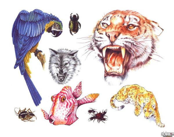 一组18张漂亮的欧美newschool动物纹身手稿图案