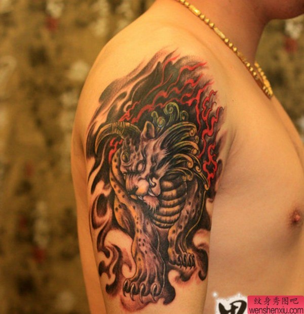 纹身图吧分享一张大臂麒麟纹身图案