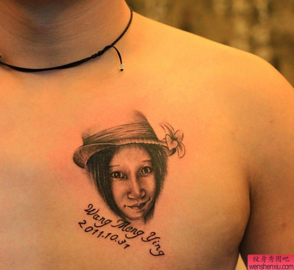 纹身图吧分享一张前胸肖像纹身图案