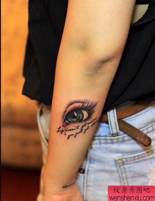 纹身图吧分享一张手臂眼睛字母图纹身图案