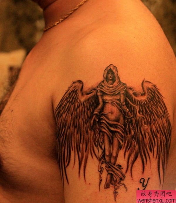 一张大臂天使纹身图案