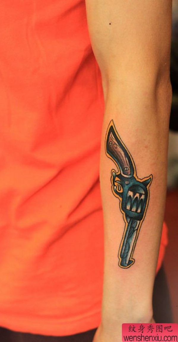 一张手臂手枪纹身图案