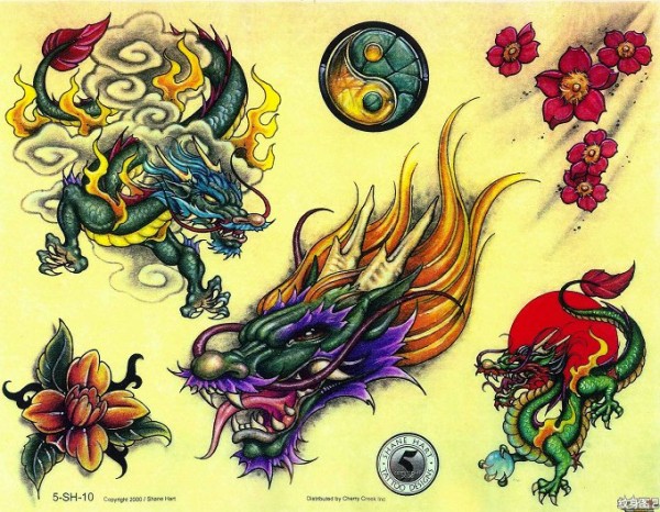龙纹身手稿_一组老传统黑灰龙手稿纹身图案