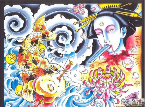 传统艺妓般若纹身图案手稿