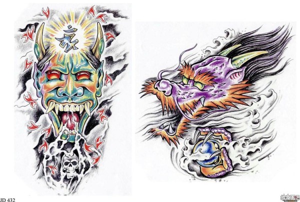 能面万媚纹身手稿_52张日式能剧面具纹身手稿图案素材欣赏