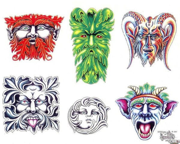 能面万媚纹身手稿_52张日式能剧面具纹身手稿图案素材欣赏