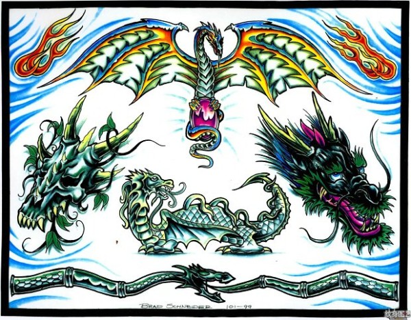 龙纹身手稿_一组老传统黑灰龙手稿纹身图案
