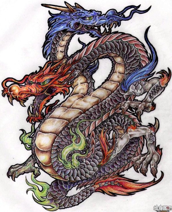 龙纹身手稿_一组老传统黑灰龙手稿纹身图案