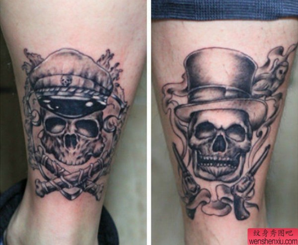 纹身图吧分享一张腿部骷髅纹身图案