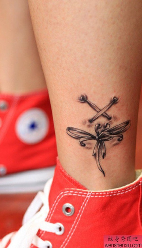 脚踝蝴蝶结纹身图案