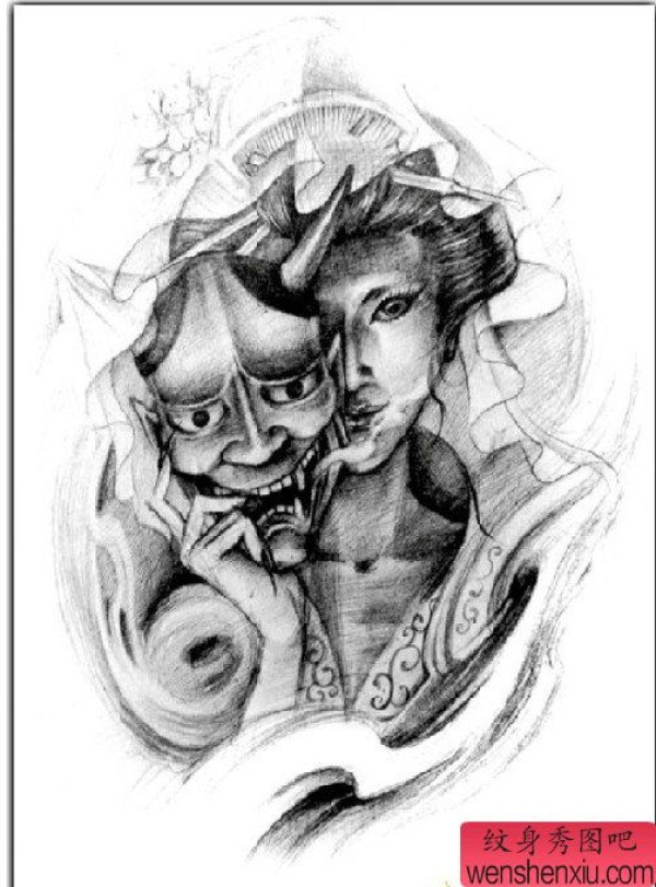 能面万媚纹身手稿_52张日式能剧面具纹身手稿图案素材欣赏