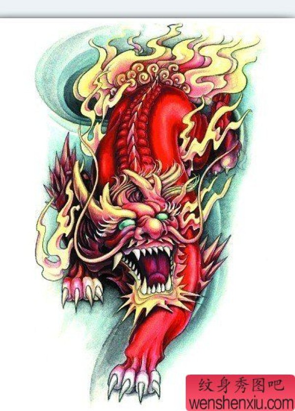 龙纹身手稿_一组老传统黑灰龙手稿纹身图案