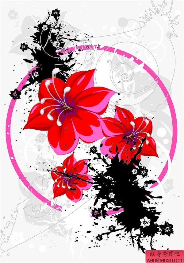 纹身图吧分享一张花卉纹身手稿图案