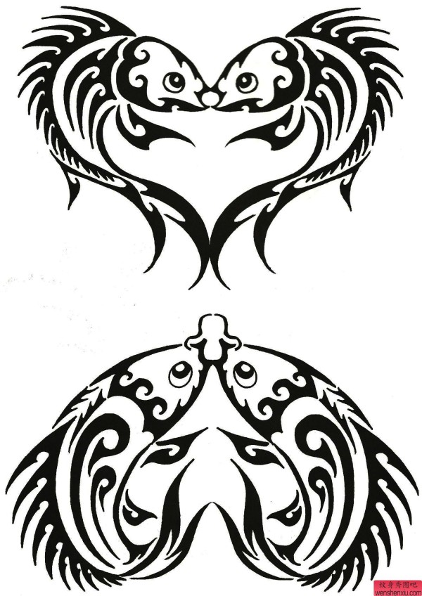 双鱼座纹身手稿_45张十二星座之双鱼手稿纹身图案