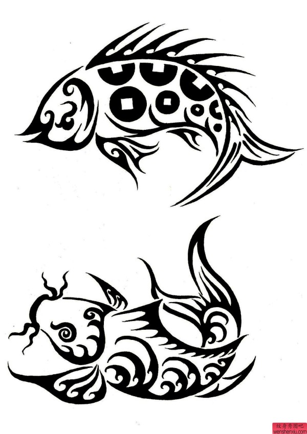 双鱼座纹身手稿_45张十二星座之双鱼手稿纹身图案