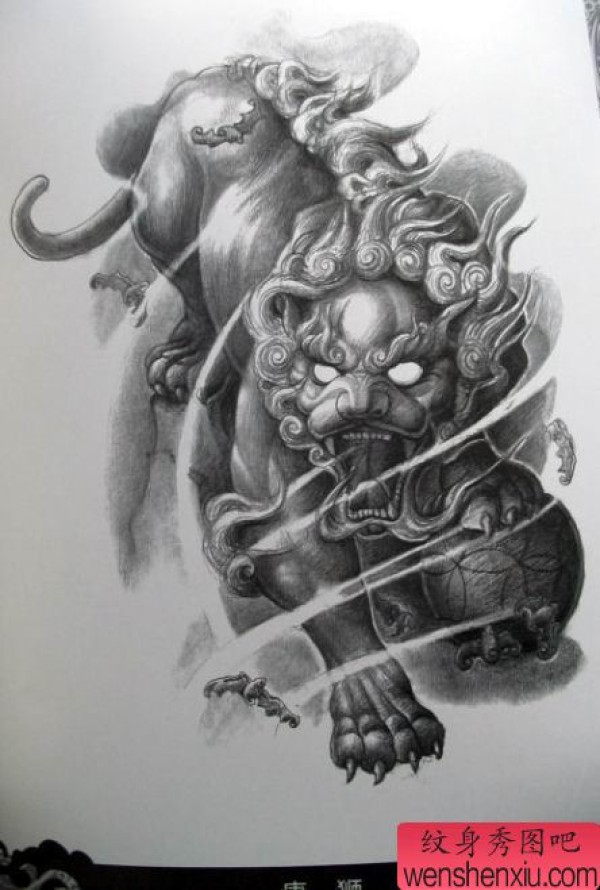 纹身图吧分享一张唐狮刺青手稿图案