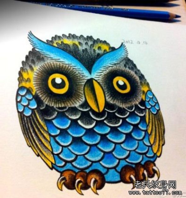 纹身图吧分享一张猫头鹰刺青手稿图案