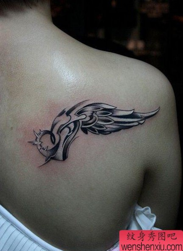 纹身图吧分享一张女性肩部翅膀刺青图案