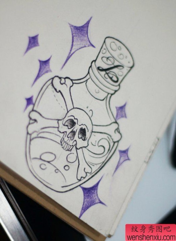 纹身图吧分享一张毒药瓶刺青手稿图案