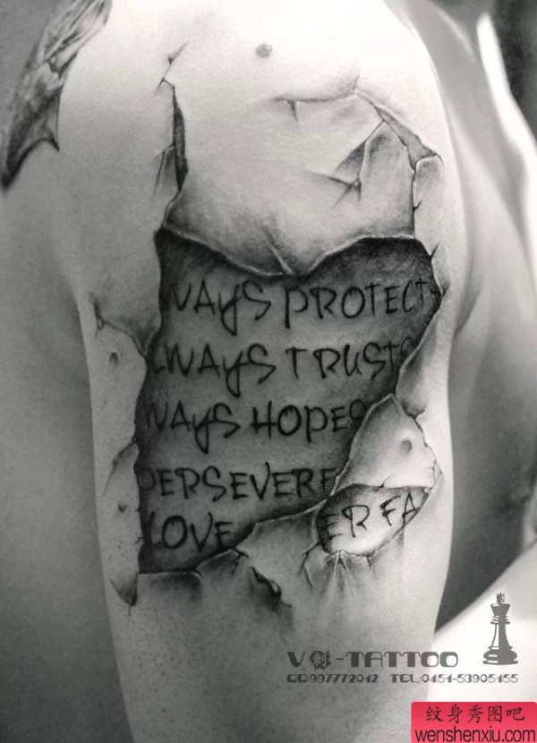 纹身图吧分享 一张手臂烙印字母刺青图案