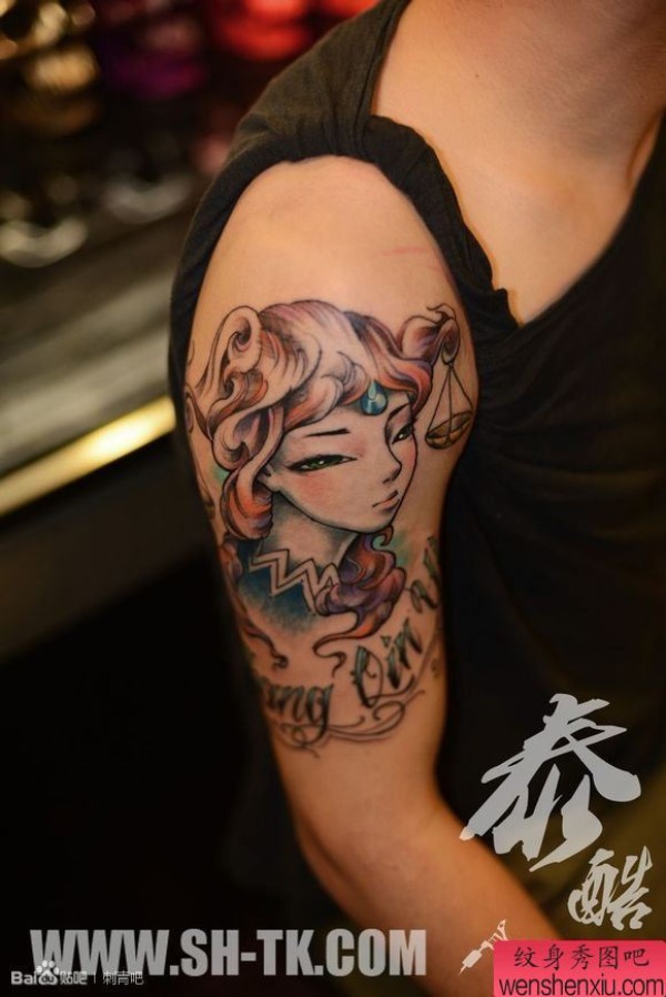 胳膊个性小小美女纹身图案