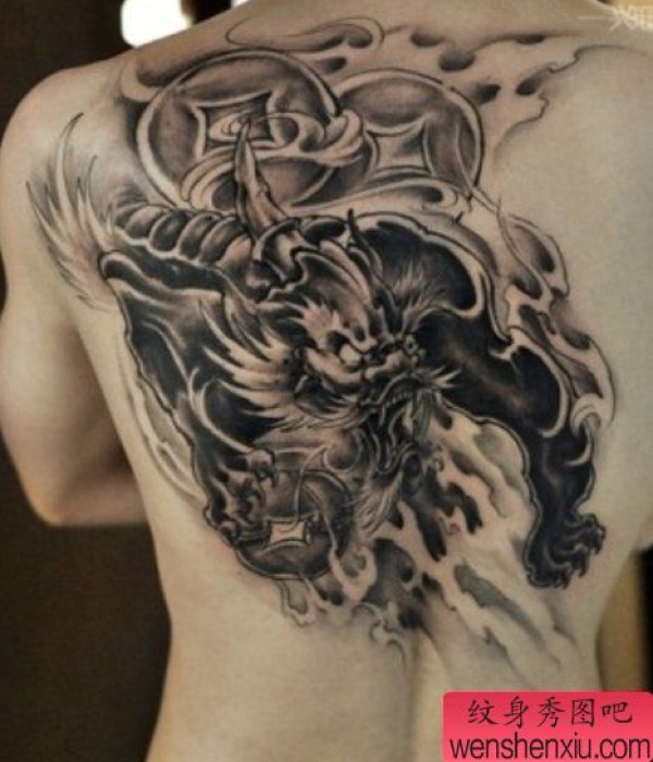 纹身图吧分享一张背部貔貅纹身图案