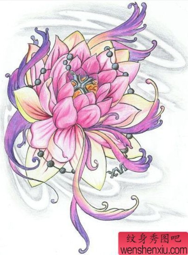 纹身图吧分享一张彩色莲花刺青手稿图案