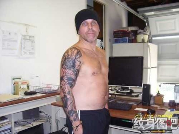 欧美花臂纹身_22张霸气黑灰欧美大黑花臂纹身图案作品图片