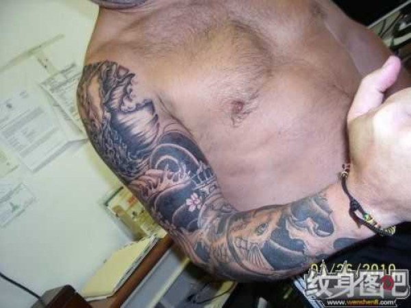 欧美花臂纹身_22张霸气黑灰欧美大黑花臂纹身图案作品图片