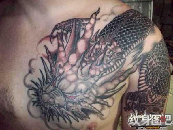龙纹身手稿_一组老传统黑灰龙手稿纹身图案