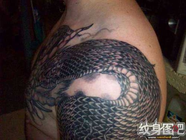 龙纹身手稿_一组老传统黑灰龙手稿纹身图案