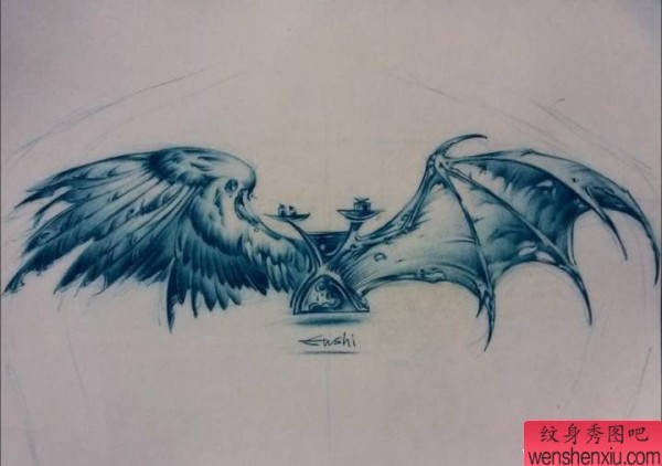 纹身图吧分享一张天使恶魔翅膀纹身图案
