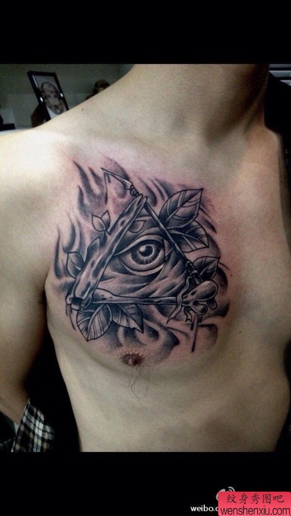 纹身图吧分享一张胸部上帝之眼纹身图案