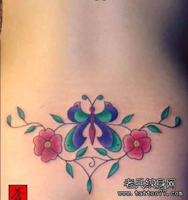 一张女性腰花藤蔓纹身图案