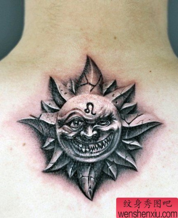 纹身图吧分享一张颈部图腾太阳刺青图案