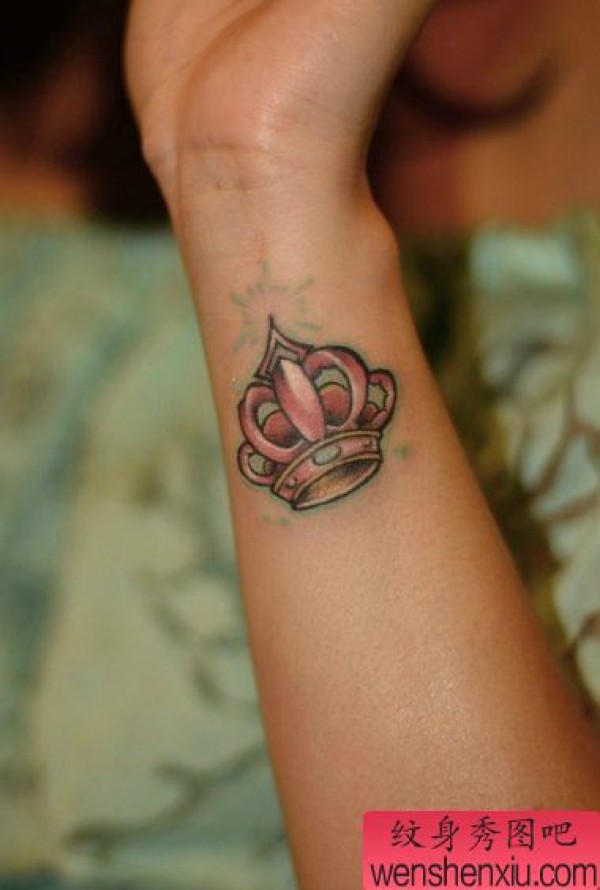 纹身图吧分享一张女性手臂皇冠纹身图案