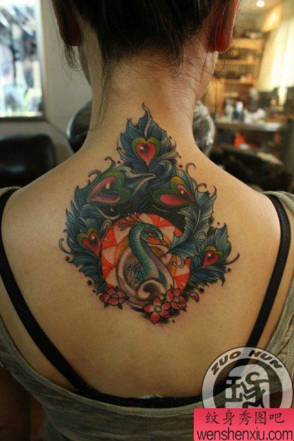 一张颈部凤凰纹身图案