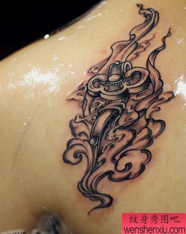背部如意雨雾纹身图案