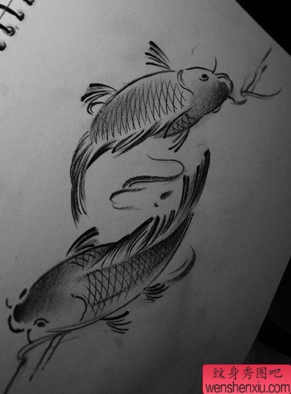 双鱼座纹身手稿_45张十二星座之双鱼手稿纹身图案