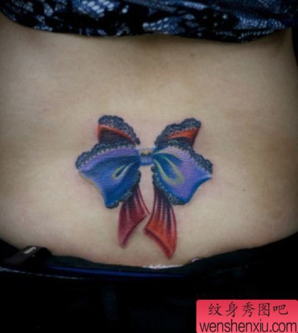 纹身图吧分享一张女性腰部蝴蝶结纹身图案
