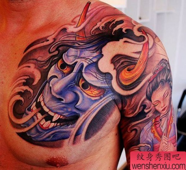 能面万媚纹身手稿_52张日式能剧面具纹身手稿图案素材欣赏