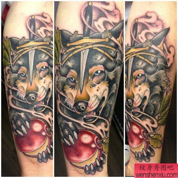 一张手臂狼头纹身图案