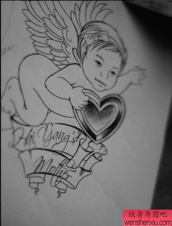 一张小天使纹身手稿图案
