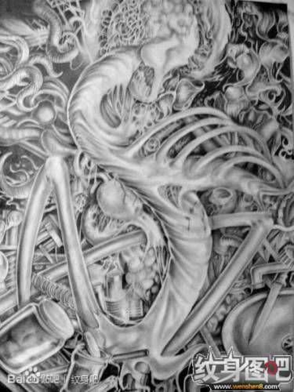 巨大的黑灰色满胸纹身图案大全来自纹身师格雷格