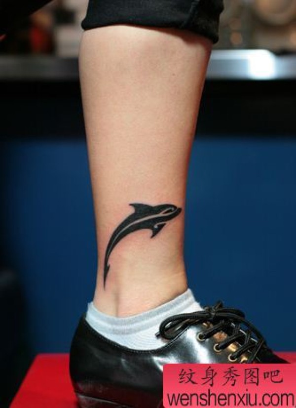 小腿图腾鲸鱼纹身图案