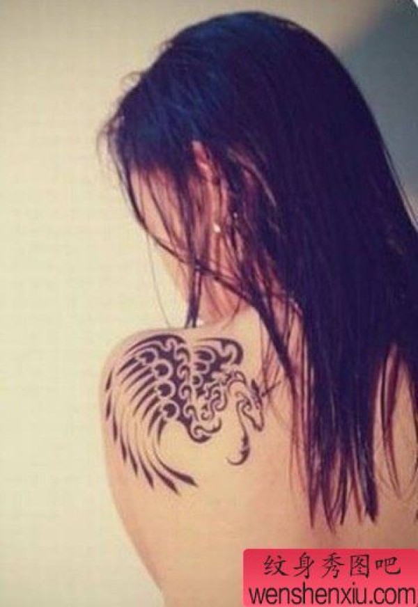纹身图吧分享一张女性肩部翅膀纹身图案